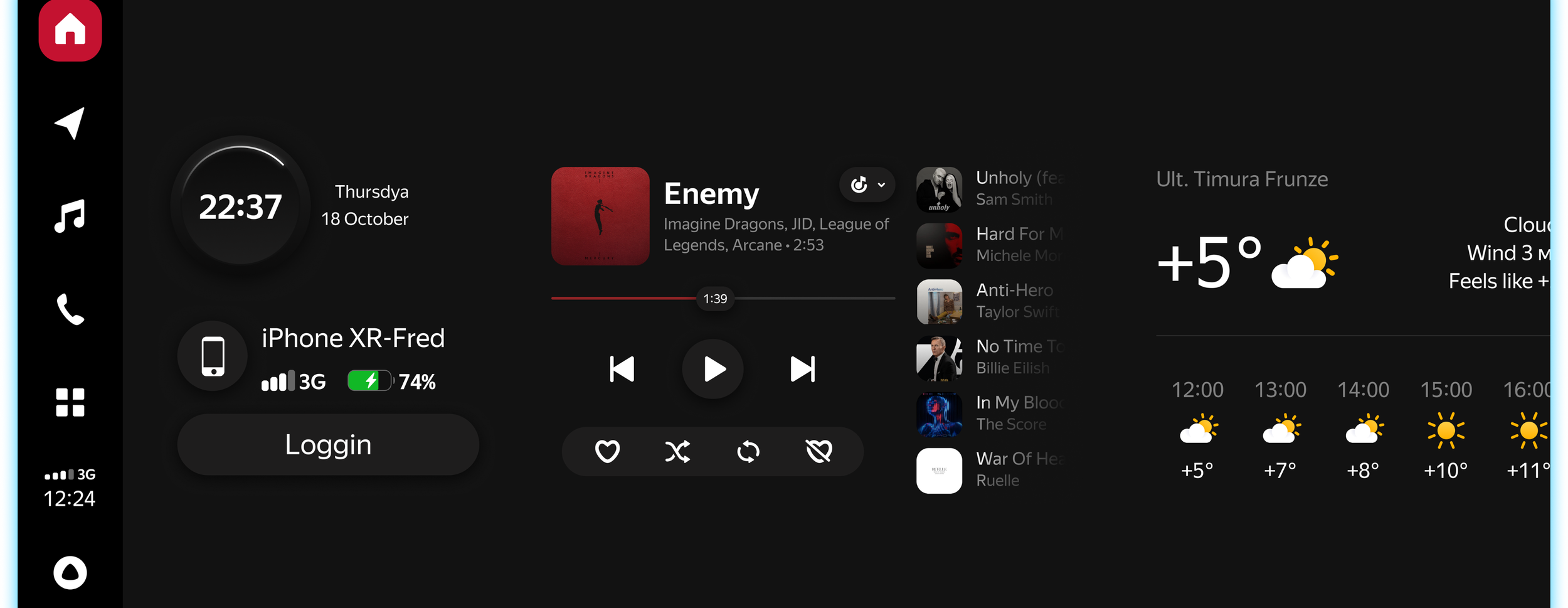 We explored an enhanced status bar concept that acts as a persistent, lightweight information layer. It surfaces key contextual information -such as connectivity, weather, and media -without interrupting the main layout or demanding extra interaction.