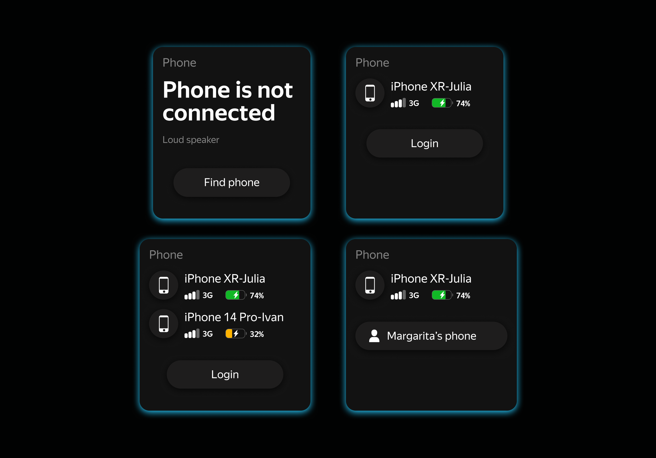 One of the more complex scenarios involved representing the state of multiple connected phones at the same time.